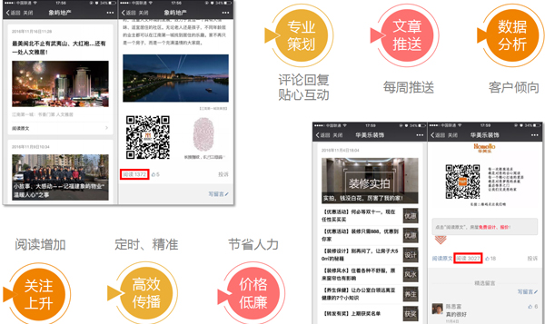 我們的專業微信營銷團隊幫企業操作全套專業營銷服務,包括建立微信公眾號,微信內容策劃、圖文推送、二維碼推廣、運營策劃、輿情檢測等。